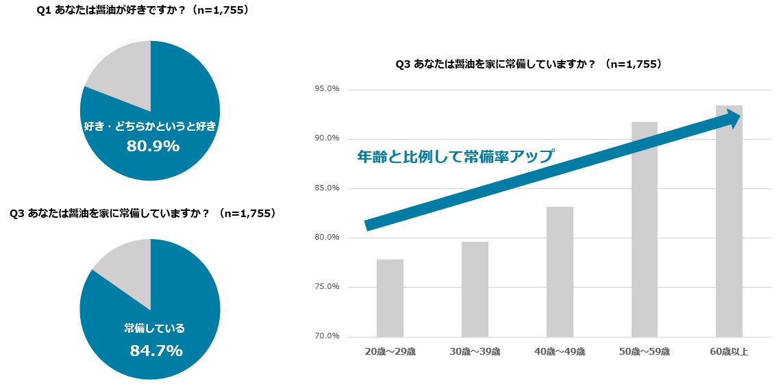 ◇醤油が好きな割合80.9%、醤油を常備している割合84.7%。