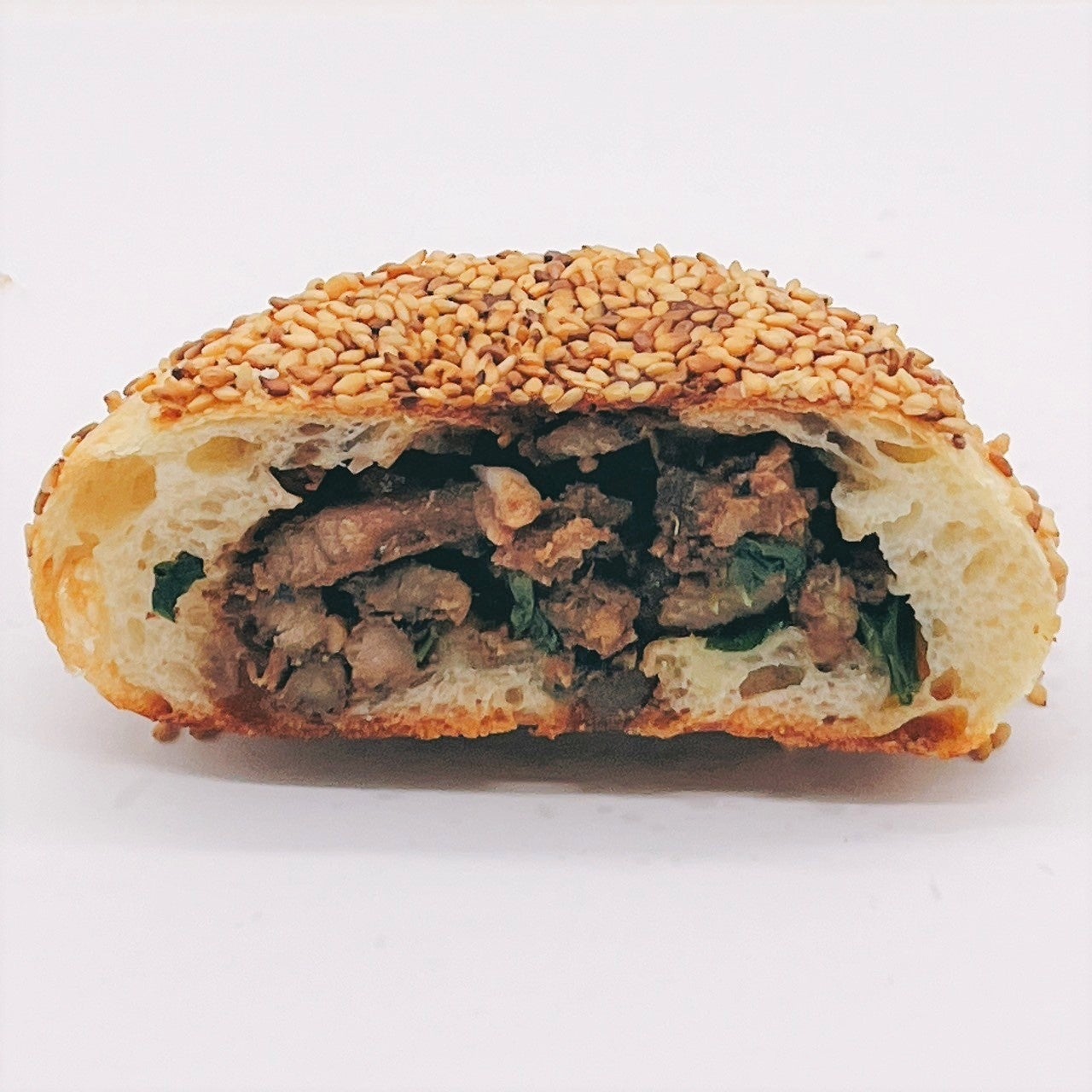 胡椒と五香粉を使ったスパイシーな辛味が利いた、もちもち食感の胡椒餅。