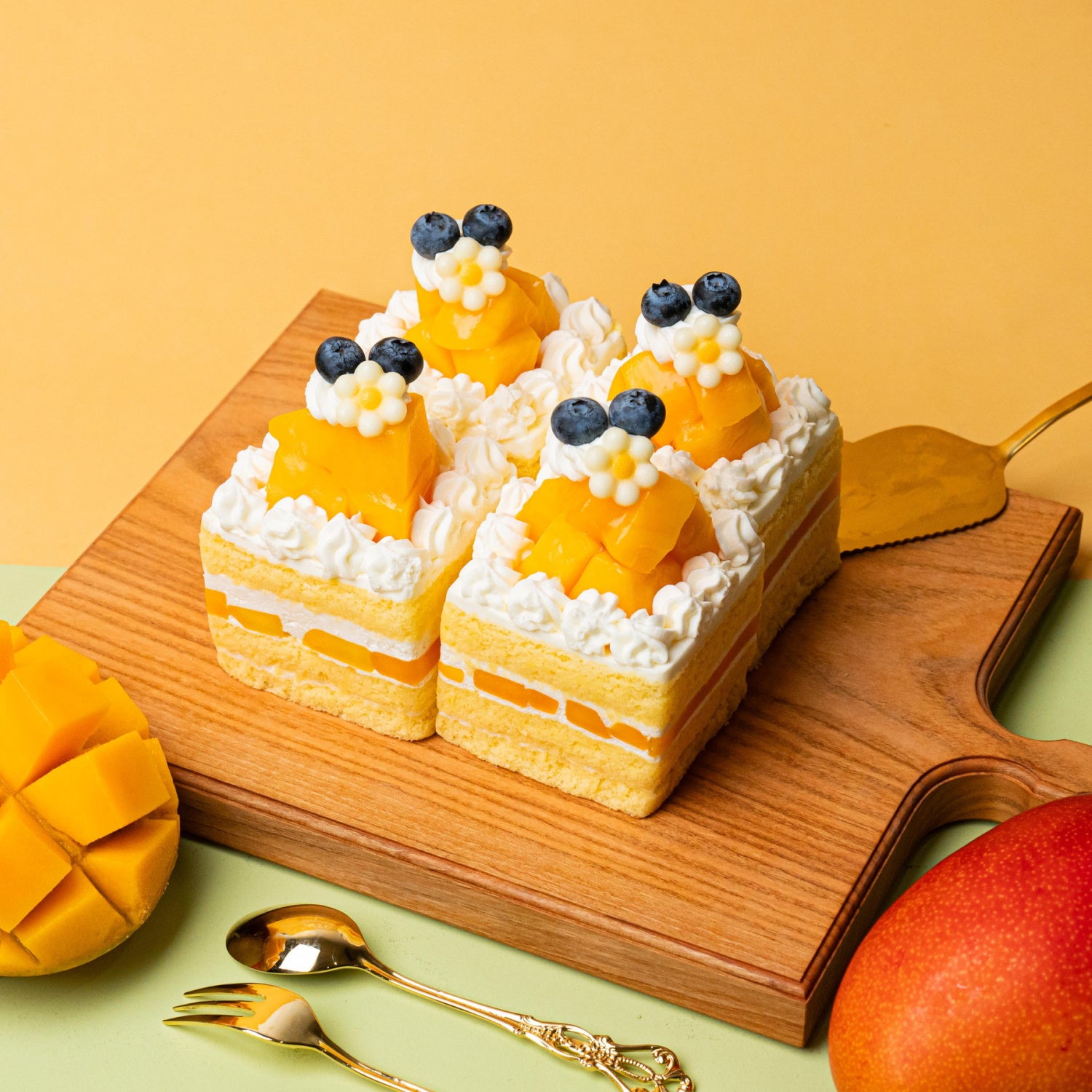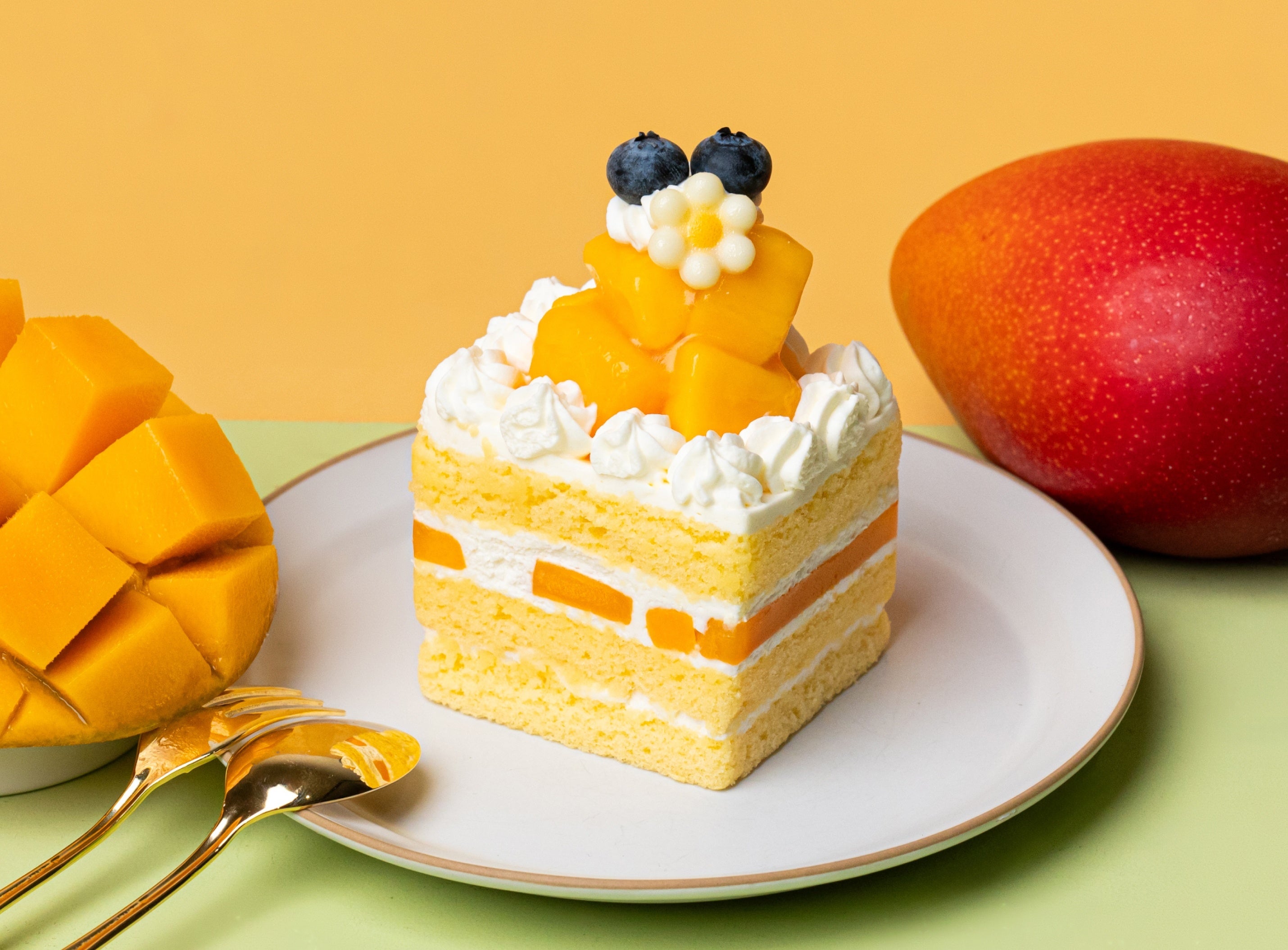 マンゴーのとろけるような食感を存分にお楽しみいただけるようスポンジを薄くカットし、贅沢に敷き詰めました。