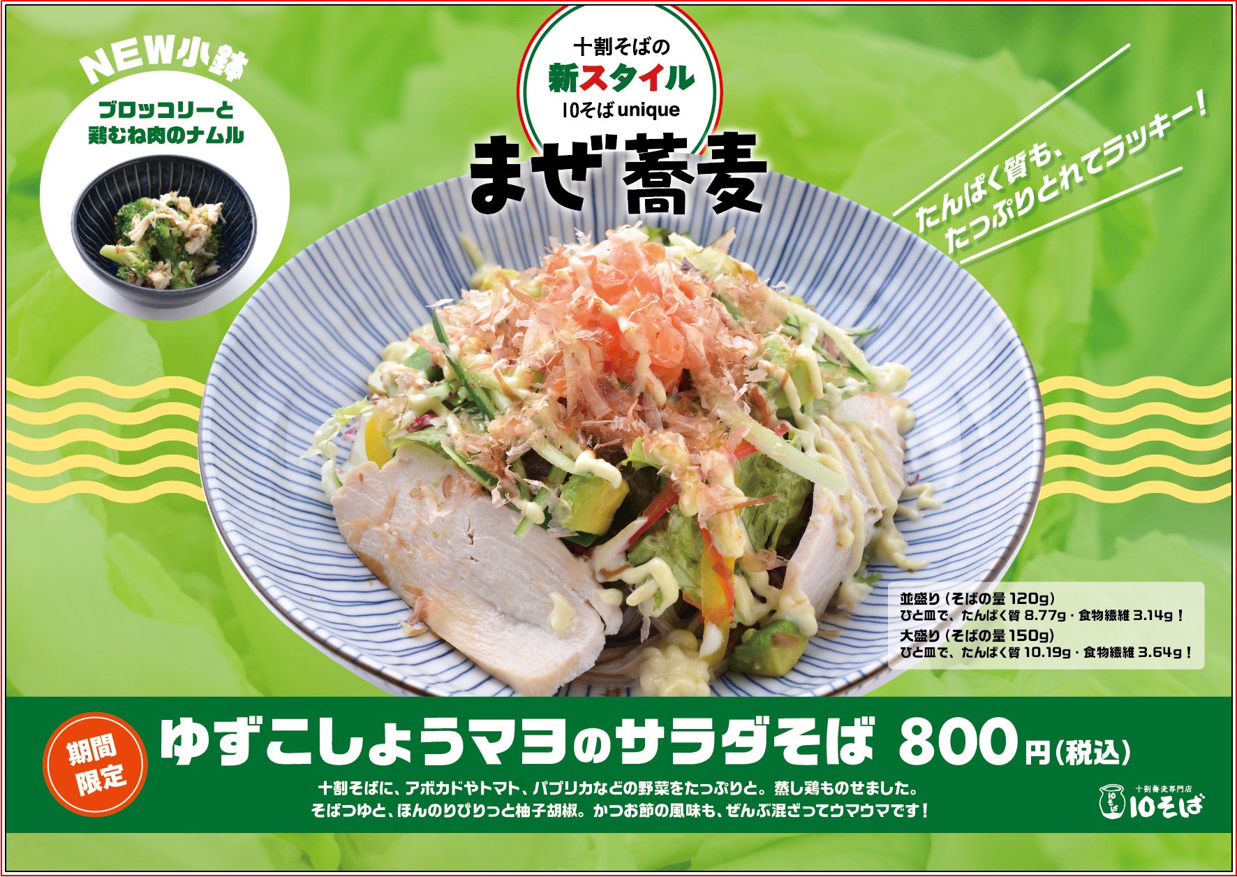 十割そばと意外と合う!野菜もたんぱく質もおいしくとれる「ゆずこしょうマヨのサラダそば」が登場