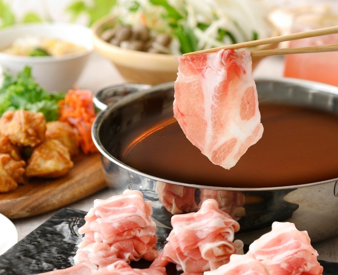 プレミアムコースでは、肉汁と10種類のブレンドした濃厚なチーズが溢れ出す『チーズインハンバーグ』、更に、たっぷりのお野菜とともに楽しむ『豚肉のしゃぶしゃぶ』も登場!
