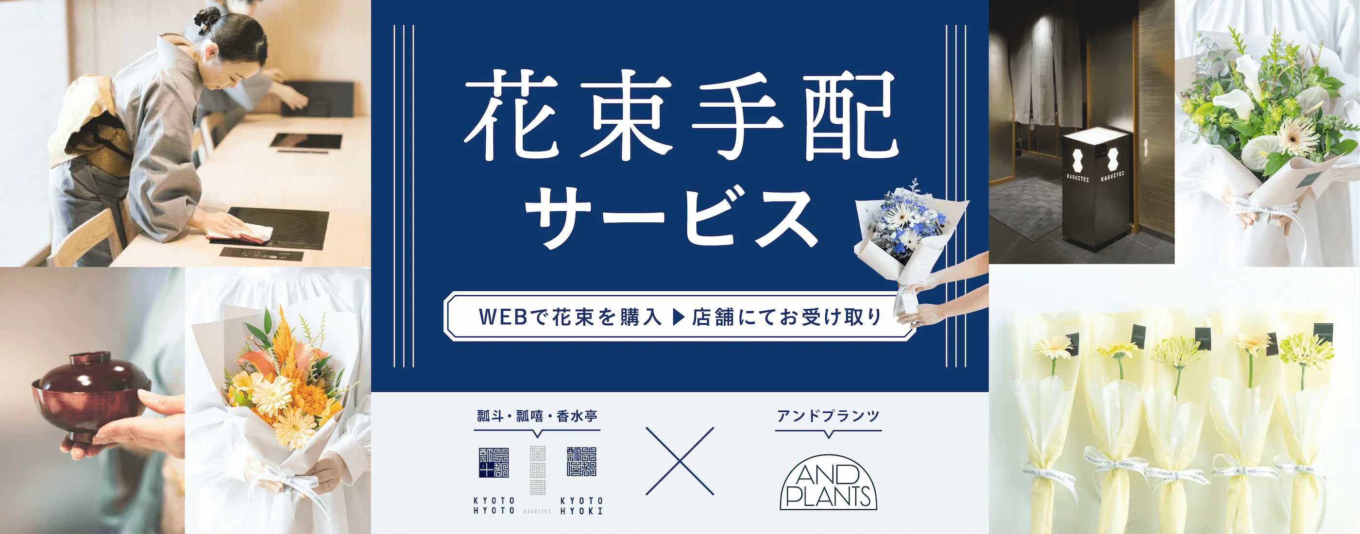 アンドプランツは株式会社mihakuと提携し、日本料理店「京都 瓢斗」「京都 瓢喜」「瓢嘻 香水亭」にて、花束を事前予約することで来店時に受け取ることができる「花束手配サービス」を、2024年5月27日(月)より提供開始いたします。本サービスは「京都 瓢斗」「京都 瓢喜」「瓢嘻 香水亭」の全店舗にてご利用いただけます。
