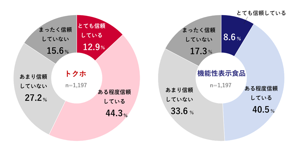 ラベル表示や説明の信頼度は「トクホ」が57.2%、「機能性表示食品」が49.1%
