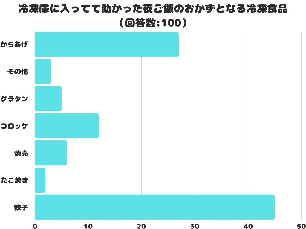 冷凍庫に入ってて助かった夜ご飯のおかずとなる冷凍食品をアンケートにて調査したところ、1位は「餃子」でした。