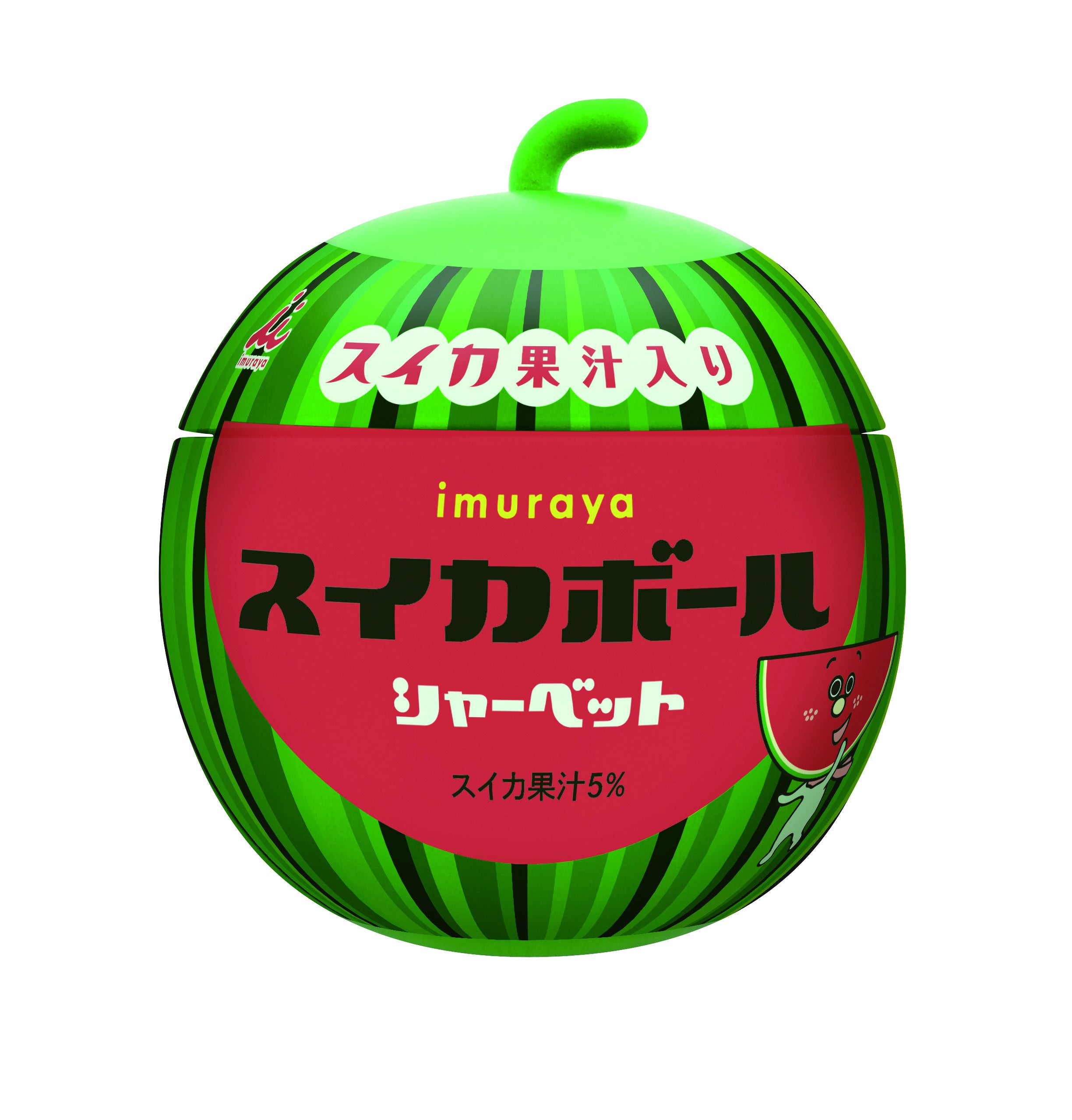スイカ型の容器に入った、夏に食べやすい爽やかな甘さのシャーベットアイス。