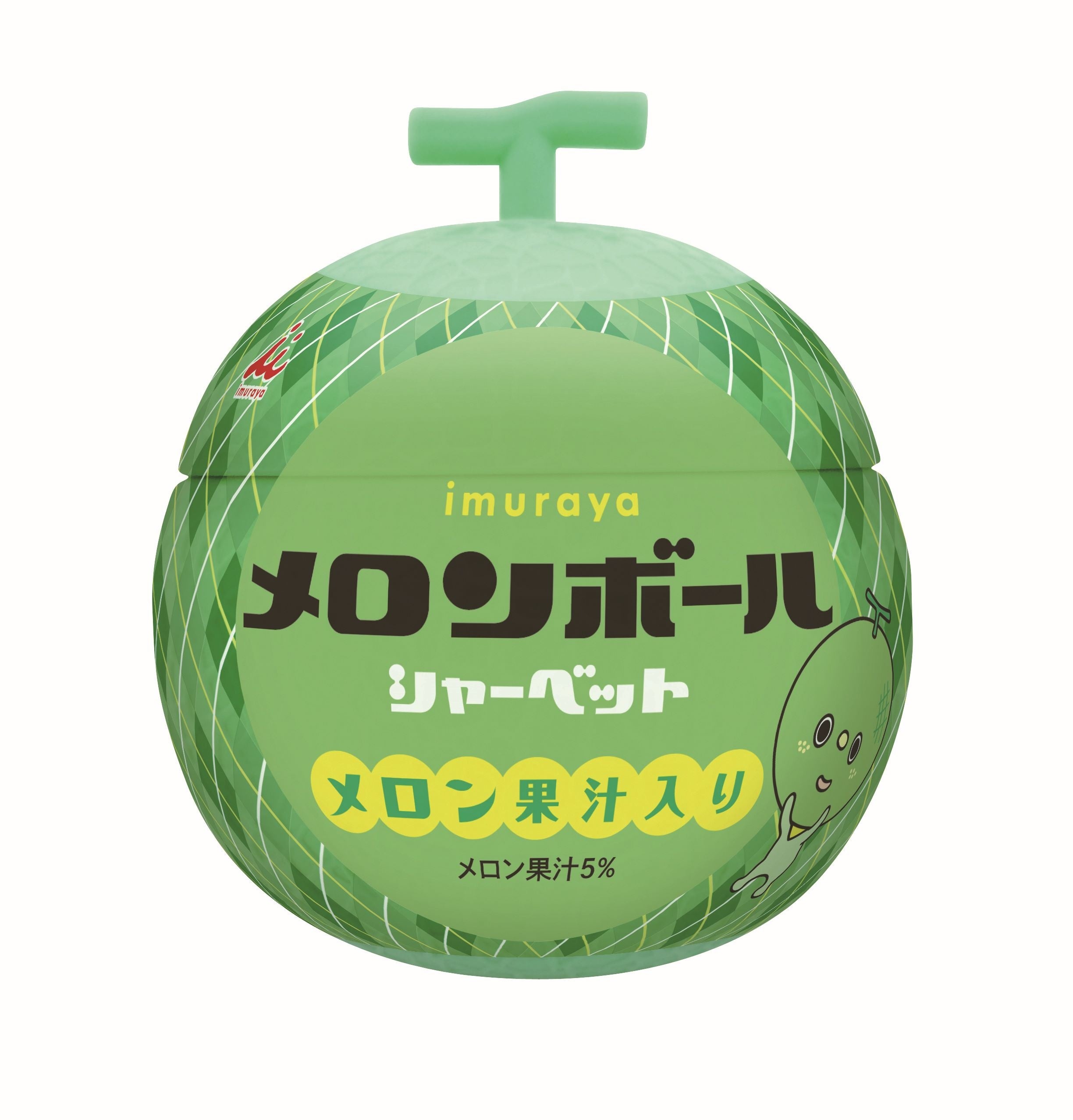 メロン型の容器に入った、メロンの爽やかな甘さを楽しめるシャーベットアイス。