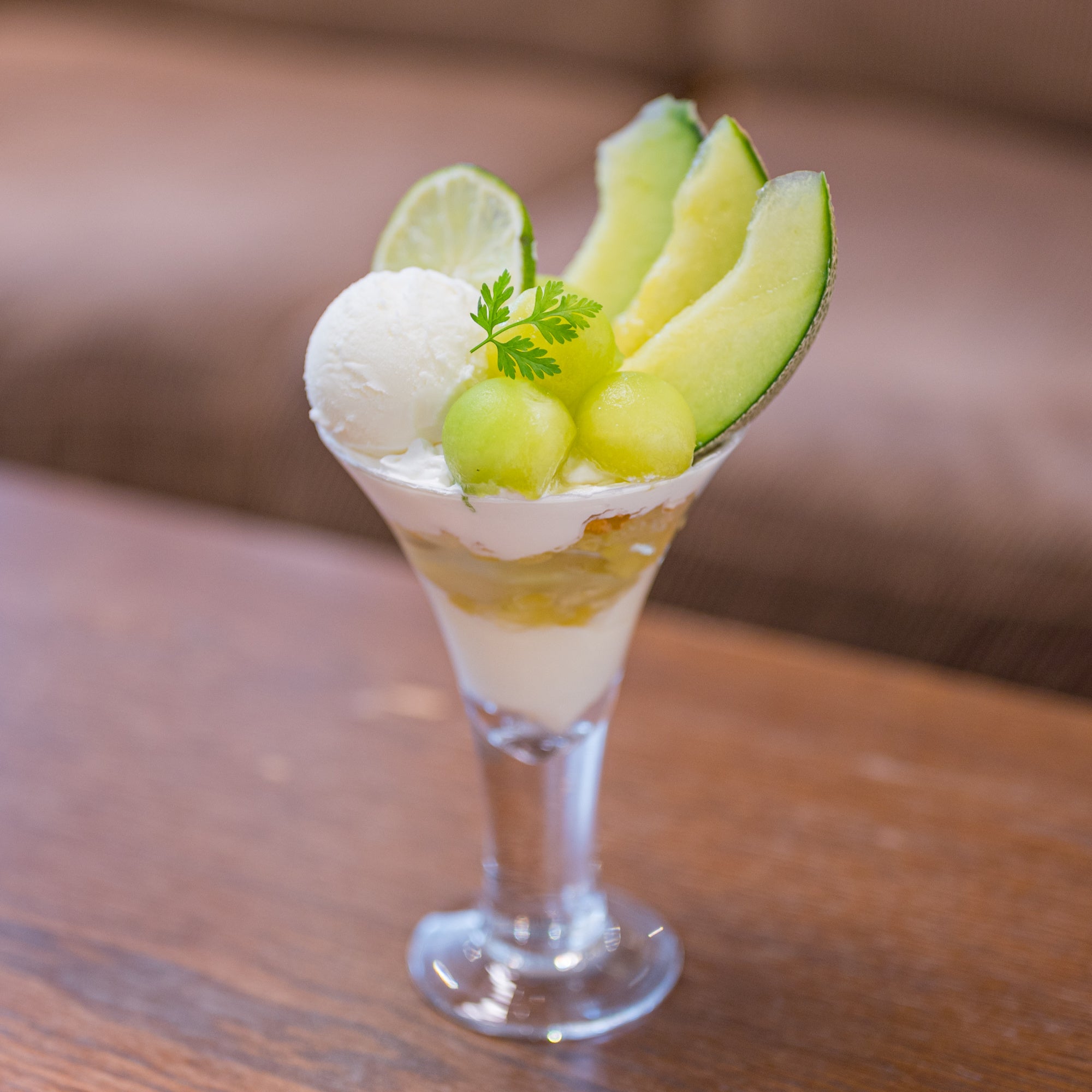 メロンジュレ、パンナコッタ、ヨーグルトアイスなど、ひとすいごとに異なる味わいが楽しめる。