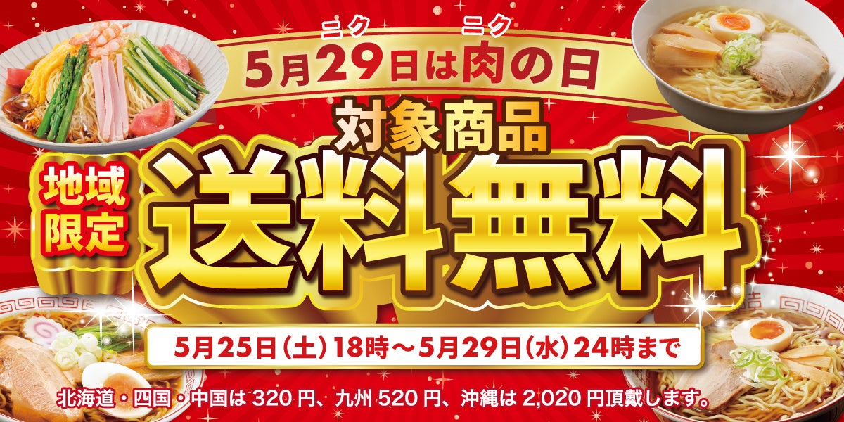 《5月29日は“肉(ニク)”の日》喜多方ラーメンの河京「肉の日限定」地域限定・送料無料※キャンペーンを開催