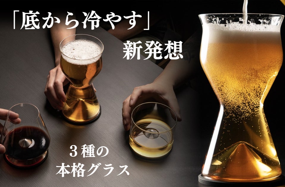 クラファン応援購入サイトMakuakeで大きな反響があった【グラスを底から冷やす新発想 最後の一滴まで冷たさをキープする本格グラス The Chill Series】、待望の一般販売を開始致します。