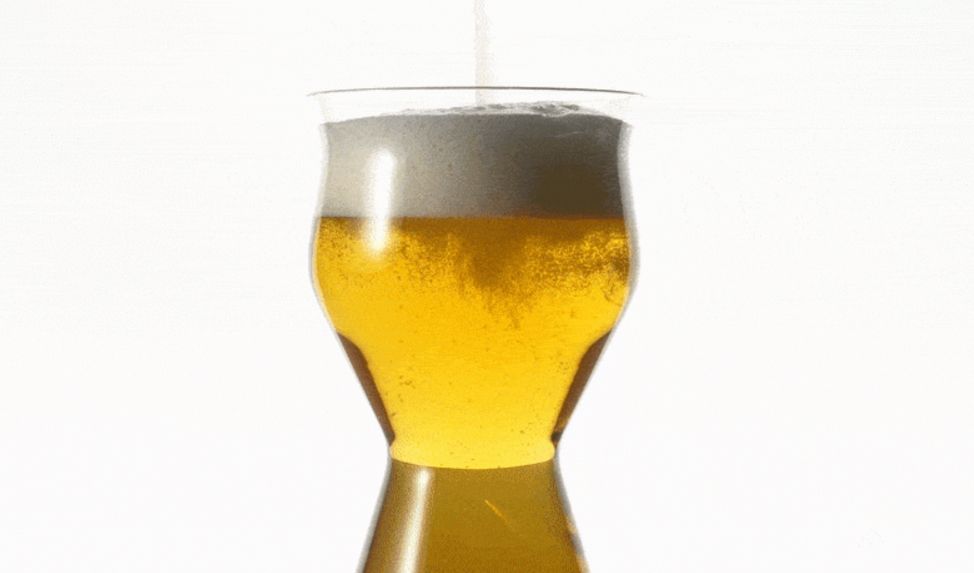 チューリップ型のくびれ構造によってビールを注ぐだけで、泡とビールのバランスが理想的な7:3に。