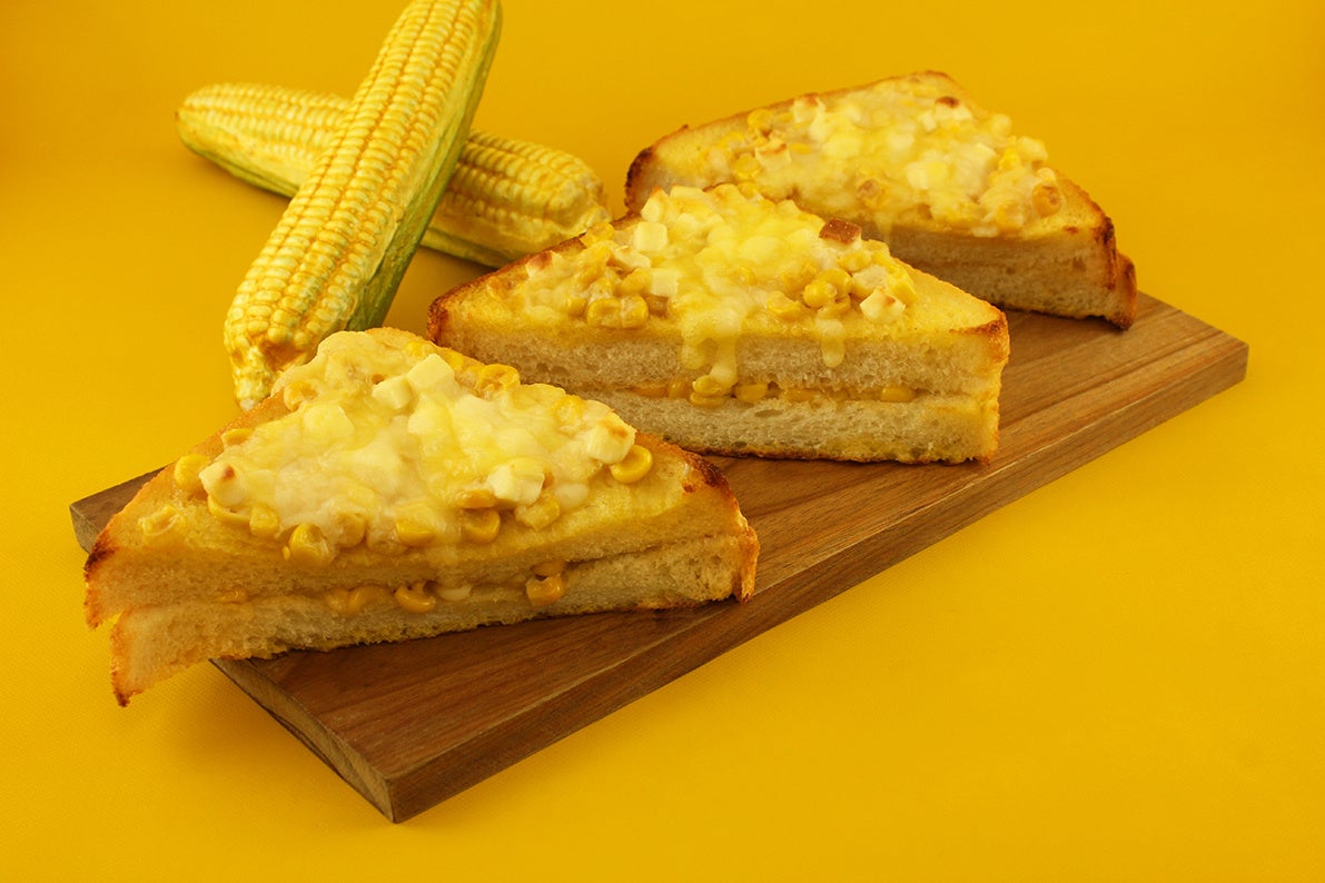 北海道コーンをふんだんに使用したフレンチトーストです。こぼれおちそうなほどたっぷりのコーンと、とろけるチーズのまろやかさが絶妙にマッチします。