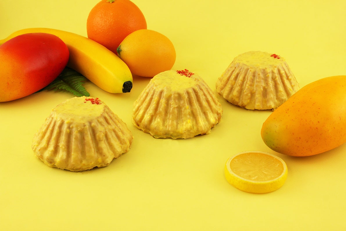 ザクザクのチョコフィリングとバナナを包み焼き上げ、仕上げにパッションフルーツ風味のチョコでコーティングしました。チョコの甘さとパッションフルーツのトロピカルな味わいが、爽やかなハーモニーを奏でます。