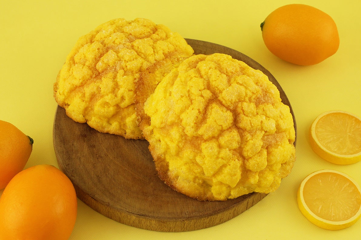 瀬戸内産レモンのピールを練り込んだソフトな食感の生地に、レモン風味のクッキー生地をかぶせてふんわりと焼き上げました。一口食べると優しいレモンの風味が広がり、外はさくっ、中はふわふわの生地のとりこになります。