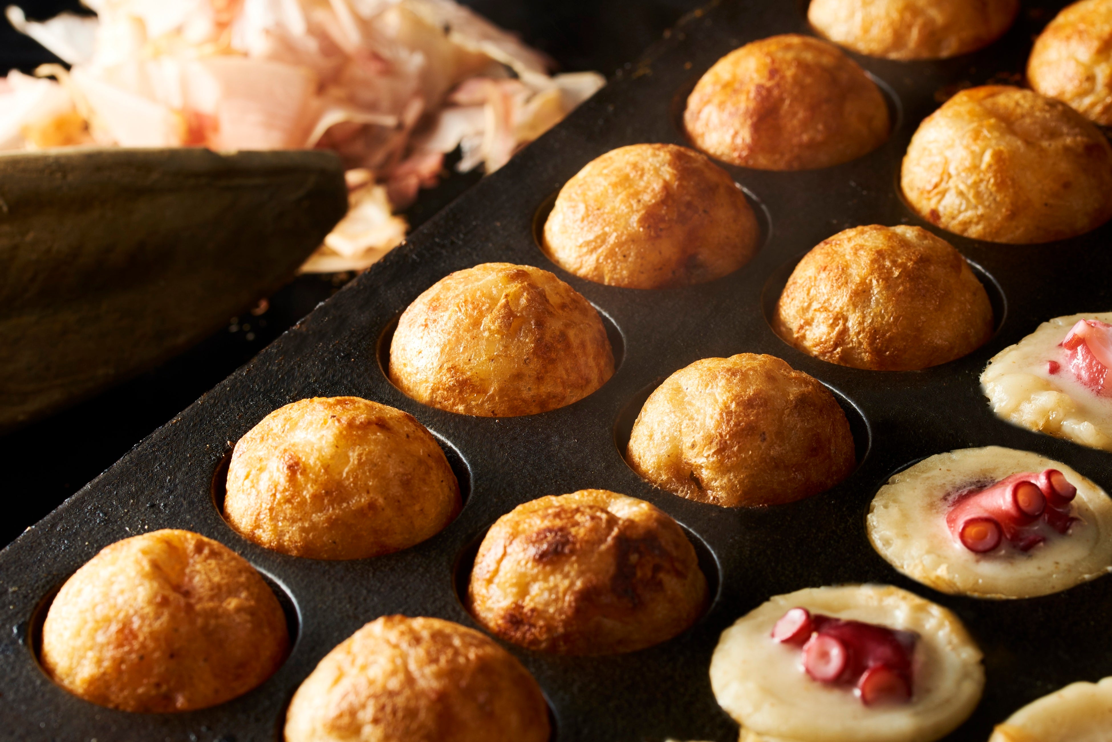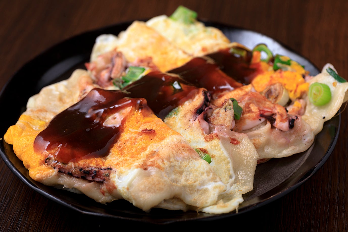 大阪を代表するソウルフードとして愛されているいかやきの専門店として大阪・京橋に店を構えます。出汁を丁寧にとり<いかやきやまげん>オリジナルの生地に練り合わせることで生地のうま味をひき出します。食感は擦りおろした生山芋を生地に練り込み、もちもち食感に仕上げており、イカもイカゲソを使用することでより一層風味が増します。