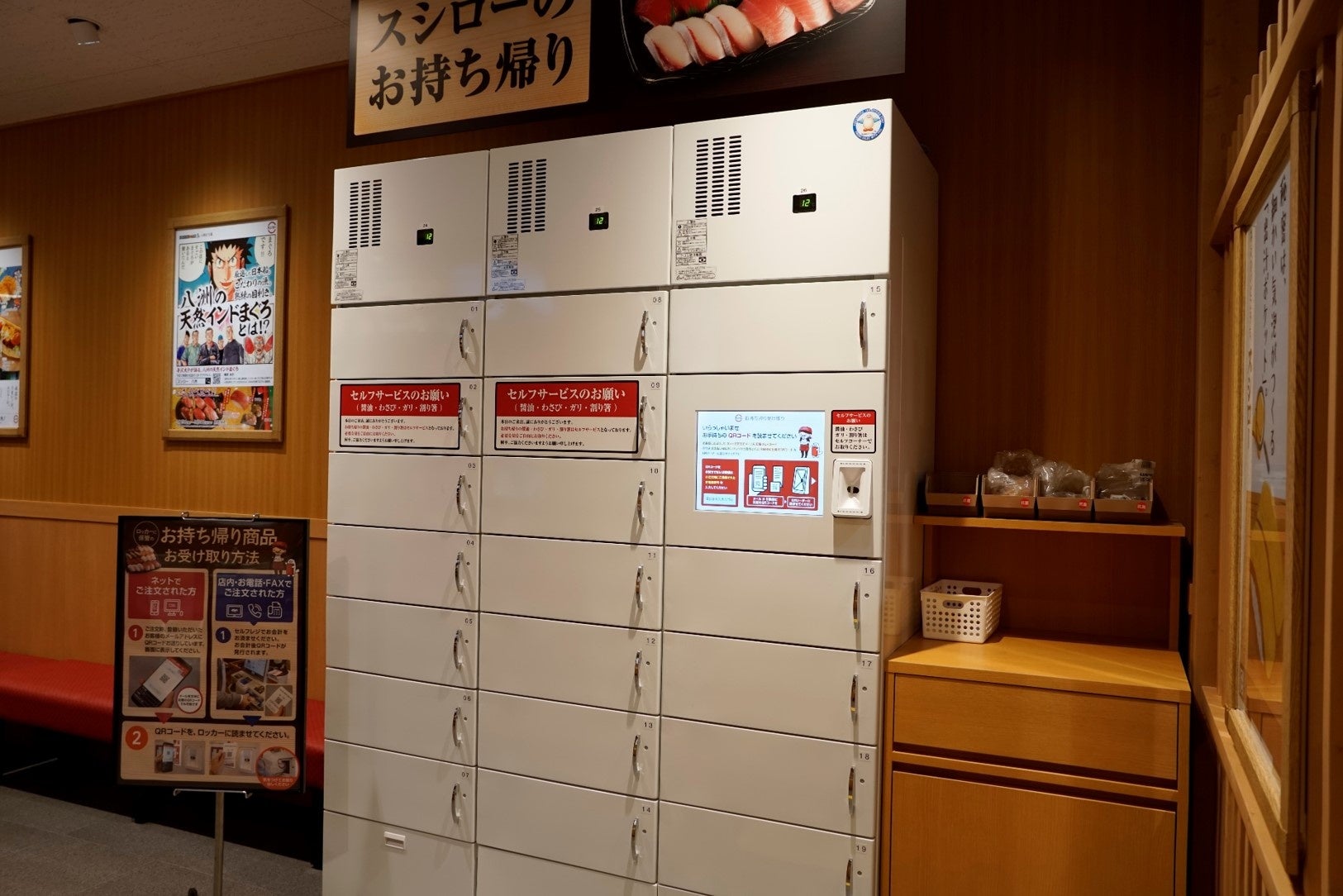 一部店舗にて、お持ち帰り商品をスムーズに、受け取ることができるシステムとして『自動土産ロッカー』を導入しています。スシローアプリでお好みの商品をご予約いただくと、メールで二次元コードが届きます。その二次元コードをロッカーに読み込ませることで、温度管理されたロッカーから、わずか数十秒でお持ち帰り商品をお受け取りいただけます。