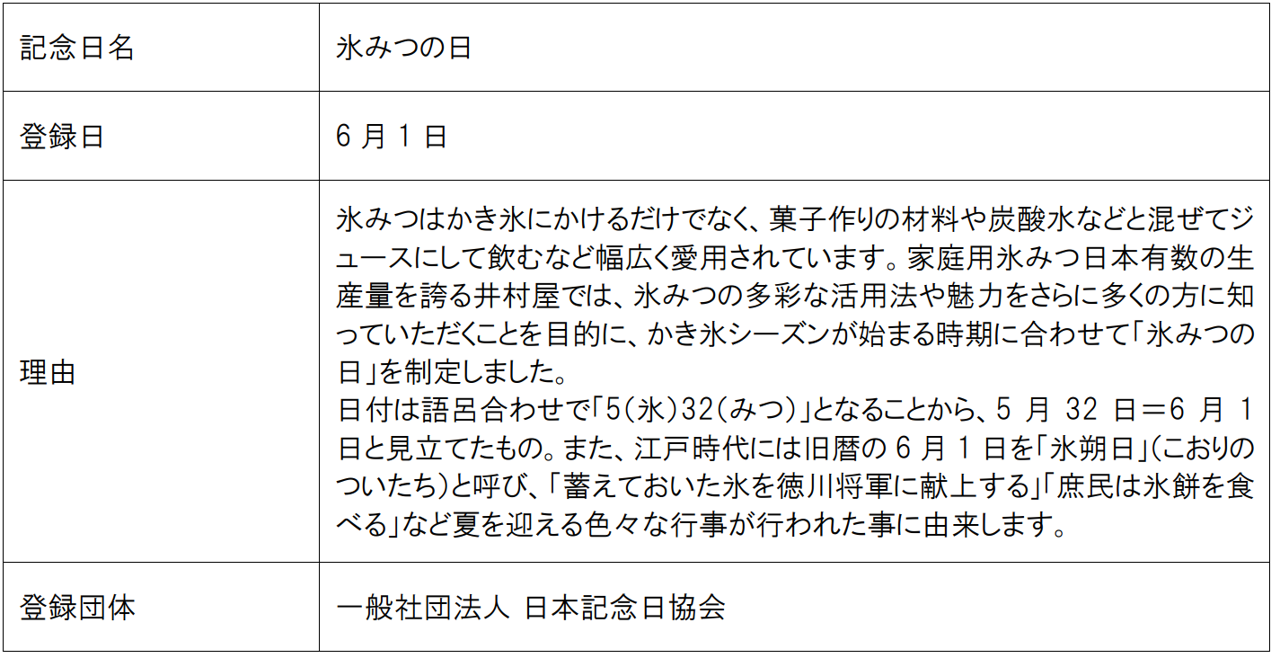 「氷みつの日(6月1日)」を申請し、承認をいただきました。