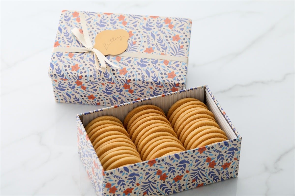 このたび6月1日(土)から販売を開始する『Butteryクッキー(シトロン)』は、Buttery本店とオンラインショップでの先行販売となります。レモン果汁と皮を合わせた『Butteryクッキー(シトロン)』は、北海道バターの豊かな味わいとコク、爽やかなレモンの香りが口いっぱいに広がります。自慢の密閉性の高いスチームラックオーブンで焼き上げることで、焼きむらのない美しい仕上がりに。サクサクとした食感と優しい甘さが相まって、何枚でも食べられるクッキーです。赤い花柄とホワイトのリボンが可愛いオリジナルデザイン缶も魅力の1つ。Butteryの定番商品『Butteryクッキー』の新作として登場する『Butteryクッキー(シトロン)』を、ぜひこの機会にお楽しみください。