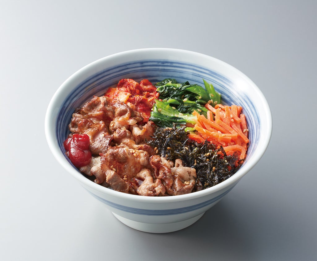 美味しい「ビビンバ丼」ができました!味の決め手は、コチュジャン、ごま油、生姜を効かせた自家製の特製だれです。厳選したコクのあるコチュジャンは、トッピングにも使用しています。肉も野菜も食べたい人におすすめです。よく混ぜてお召し上がりください。