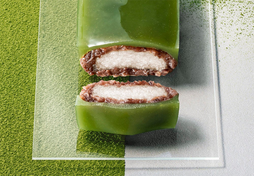 特製おはぎを宇治抹茶香る水羊羹で丸ごとくるんだ『羊羹流しのおはぎもち〈宇治金時〉』