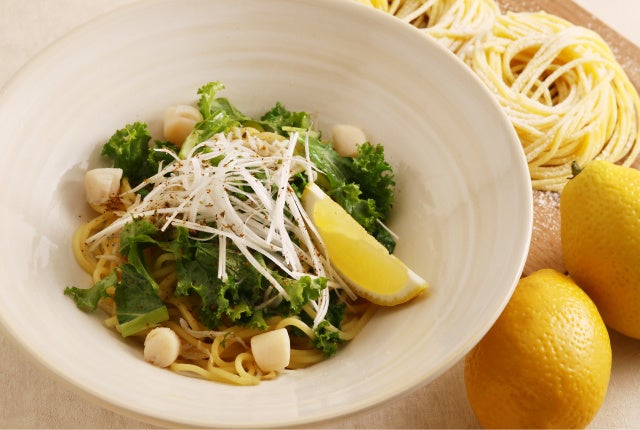 この季節にぴったりの、レモンの爽やかな香りと酸味に、もちもちの生パスタが好相性です。