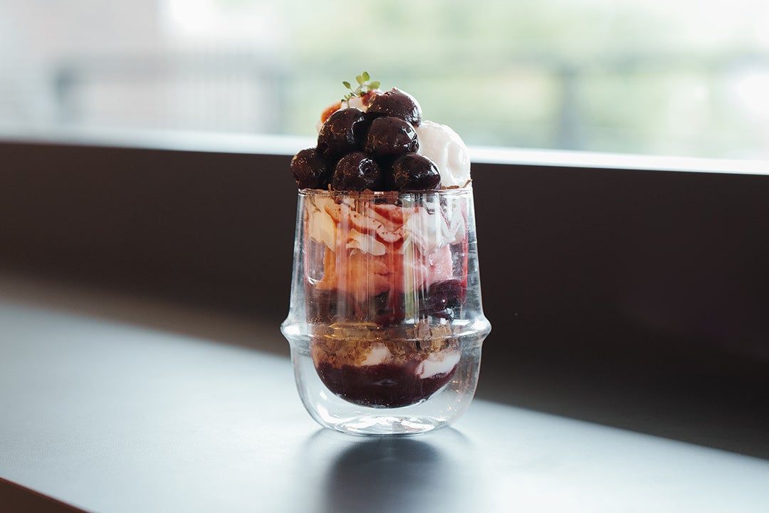 甘酸っぱいチェリーとさっぱりなめらかなフローズンヨーグルトが調和した爽やかなパフェをお楽しみください。