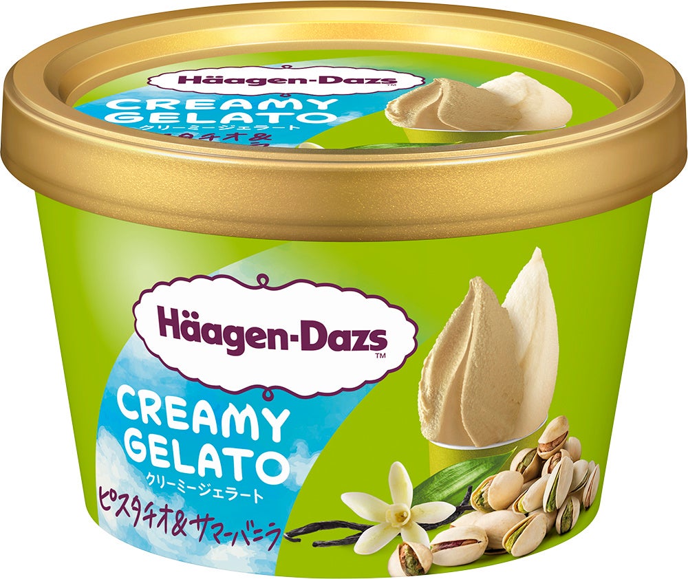 ハーゲンダッツ ミニカップ CREAMY GELATO『ピスタチオ&サマーバニラ』にトロピカルフルーツ、バターたっぷりのバターサブレをあわせた夏にぴったりの爽やかなパフェです。