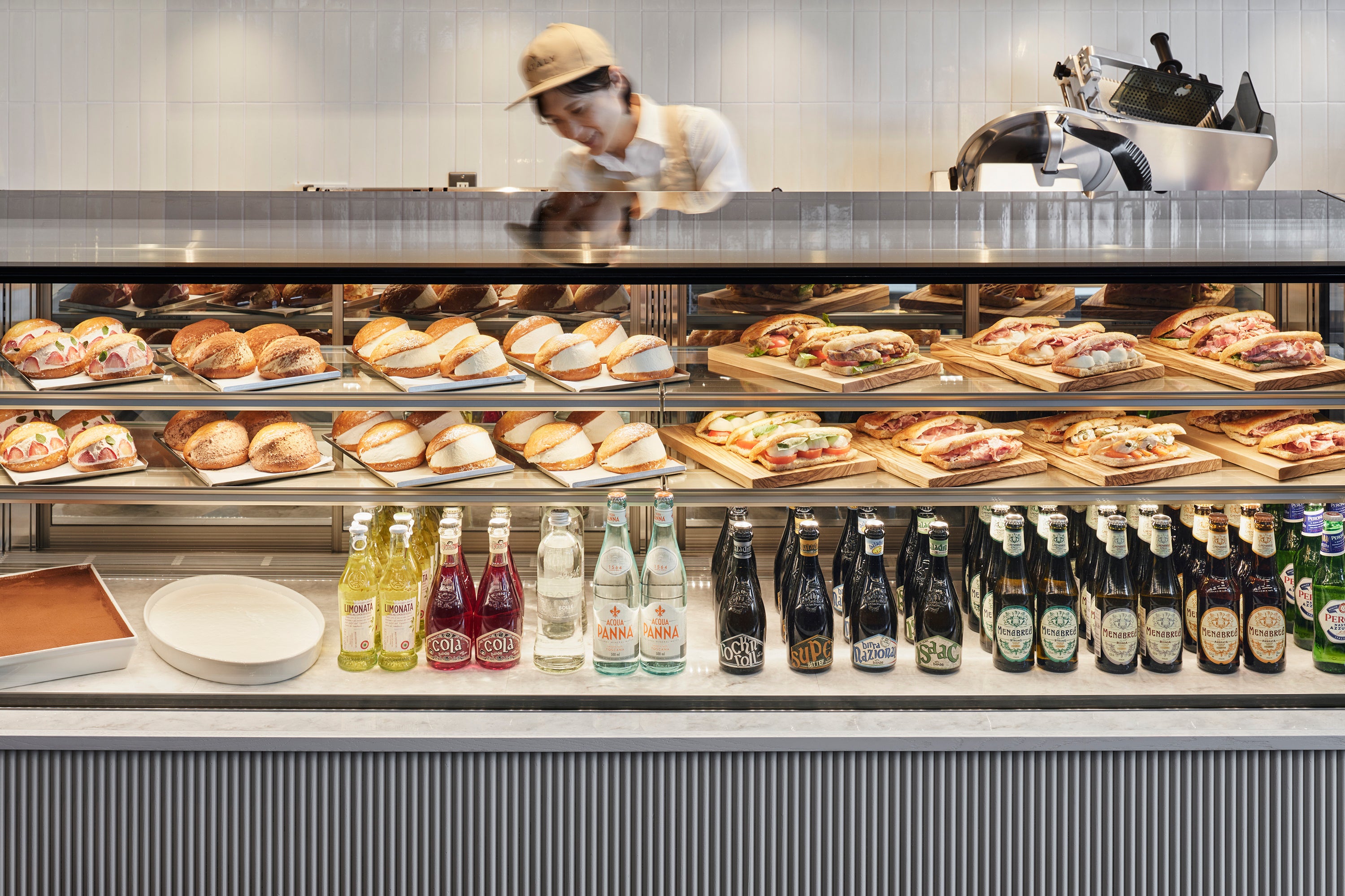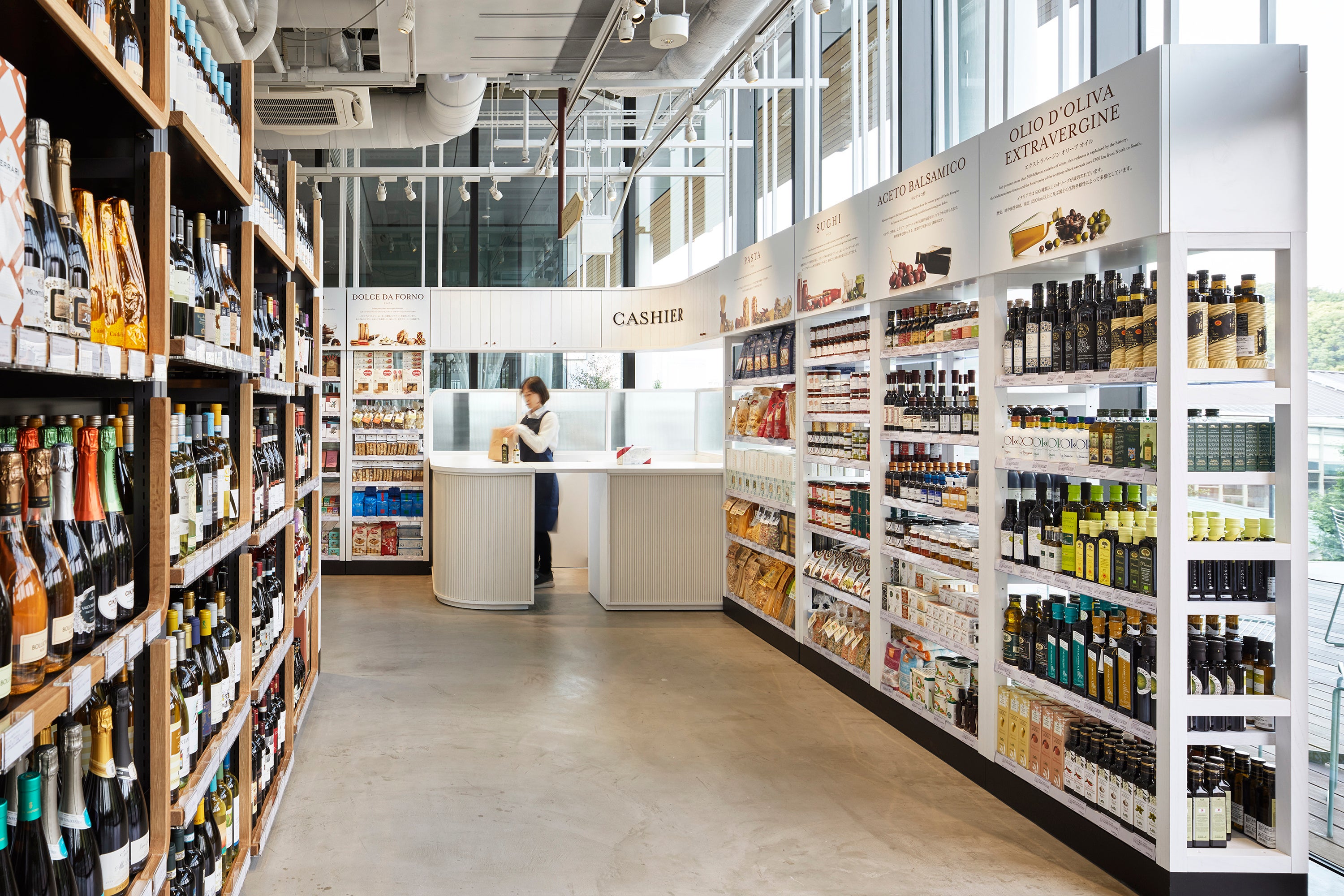 明治神宮に⾯した開放的なテラスが⼈気のイータリー原宿店。マーケット、カフ ェ&バール、レストランの3つのサービスで構成されています。 マーケットにはコンパクトながらも厳選されたイタリア⾷材が揃い、ワインやパスタ、オイル、ドルチ ェまで幅広い品揃えです。カフェ&バールはテイクアウトのパニーニ、毎⽇気軽に楽しめるアペリテ ィーボ(⾷前酒)やジェラートにドルチェと、店内外で楽しめるメニューが揃っています。