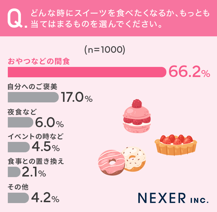 株式会社NEXER・スイーツを食べたくなるタイミングに関する調査