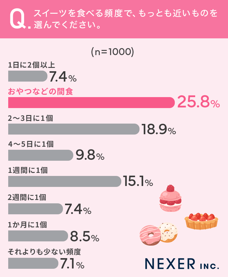 続いてスイーツを食べる頻度で、もっとも近いものを選んでもらいました。