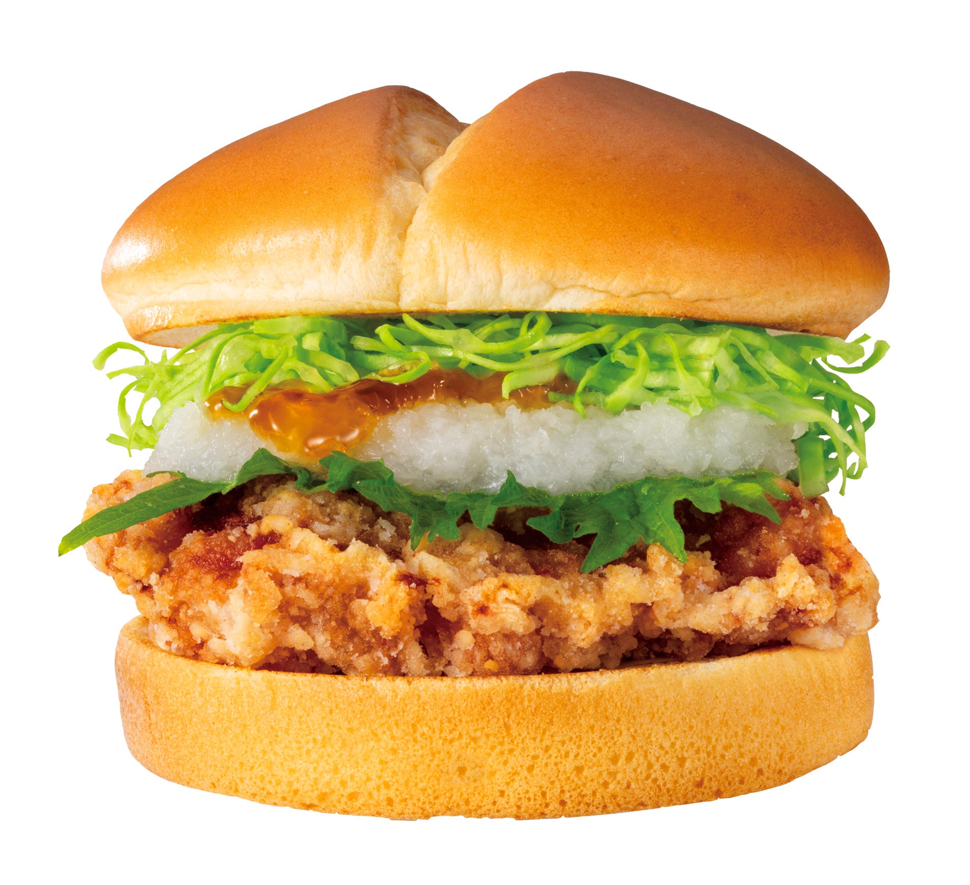 徳島県産のすだちを使ったさわやかな香りのおろしソースと、ファーストキッチンオリジナルの出汁を効かせた下味が特徴のチキン竜田を組み合わせ、トマトやレタスでさらに旨味をプラスしました。出汁入りバンズにすだちおろし、昆布ポン酢ジュレ、大葉など、和の旨味がぎゅっと詰まった夏限定・おろしバーガーです。