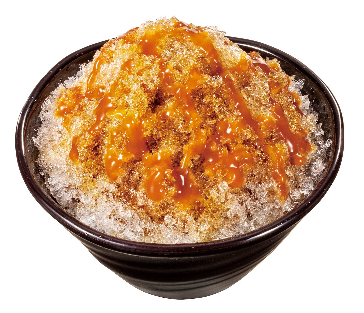 果肉感のあるとろ~りとしたマンゴーソースを使用したかき氷の中に、ファーストキッチン自慢のソフトクリームとキャラメルソースを入れました。甘味処のようなかき氷が、ファストフード店で気軽に楽しめます。