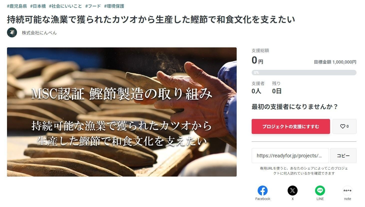 次年度以降もMSC認証の鰹節の生産が継続ができるように、また、皆さまにMSC認証の鰹節について理解を深めていただけるように、6月1日(土)10:00~6月30日(日)22:49の期間、サイト「READYFOR」にてクラウドファンディングを実施いたします。目標金額は100万円です。支援金の使用用途として下記を予定しています。