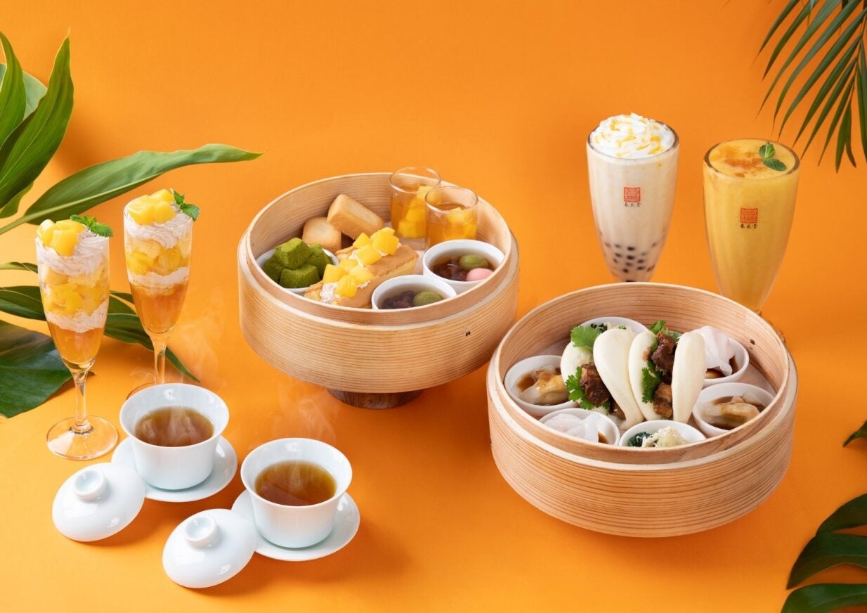 今回スタートするのは、小皿とスイーツ、アレンジティーが満喫できる豪華なマンゴーアフタヌーンティーセット(3,500円・税込)。2段の中華せいろの上段にはマンゴーアフタヌーンティー限定の「台湾カステラマンゴー」、「愛玉マンゴー」、「冷やし湯圓」、「パイナップルケーキ」など台湾の人気スイーツが5種、下段にはアフタヌーンティー限定メニューの「ミニ割包」をはじめ、「ゴマだれ水餃子」や「ぷりぷりエビ餃子」など春水堂オリジナル小皿メニューが4種、更にマンゴーがたっぷり詰まった夏らしいグラスパフェ、50種類以上から選べるお好きなアレンジティー、お好きな台湾茶をご提供いたします。甘いスイーツとフードの塩味の絶妙なバランスで、ボリュームたっぷりながら最後まで飽きずにお楽しみいただける組み合わせです。選べるドリンクは季節限定のマンゴーを使用したドリンクもお選びいただけます。是非夏休みなどのお出かけシーズンにご家族やご友人と春水堂のアフタヌーンティーをお楽しみください。*店舗により一部内容が異なります