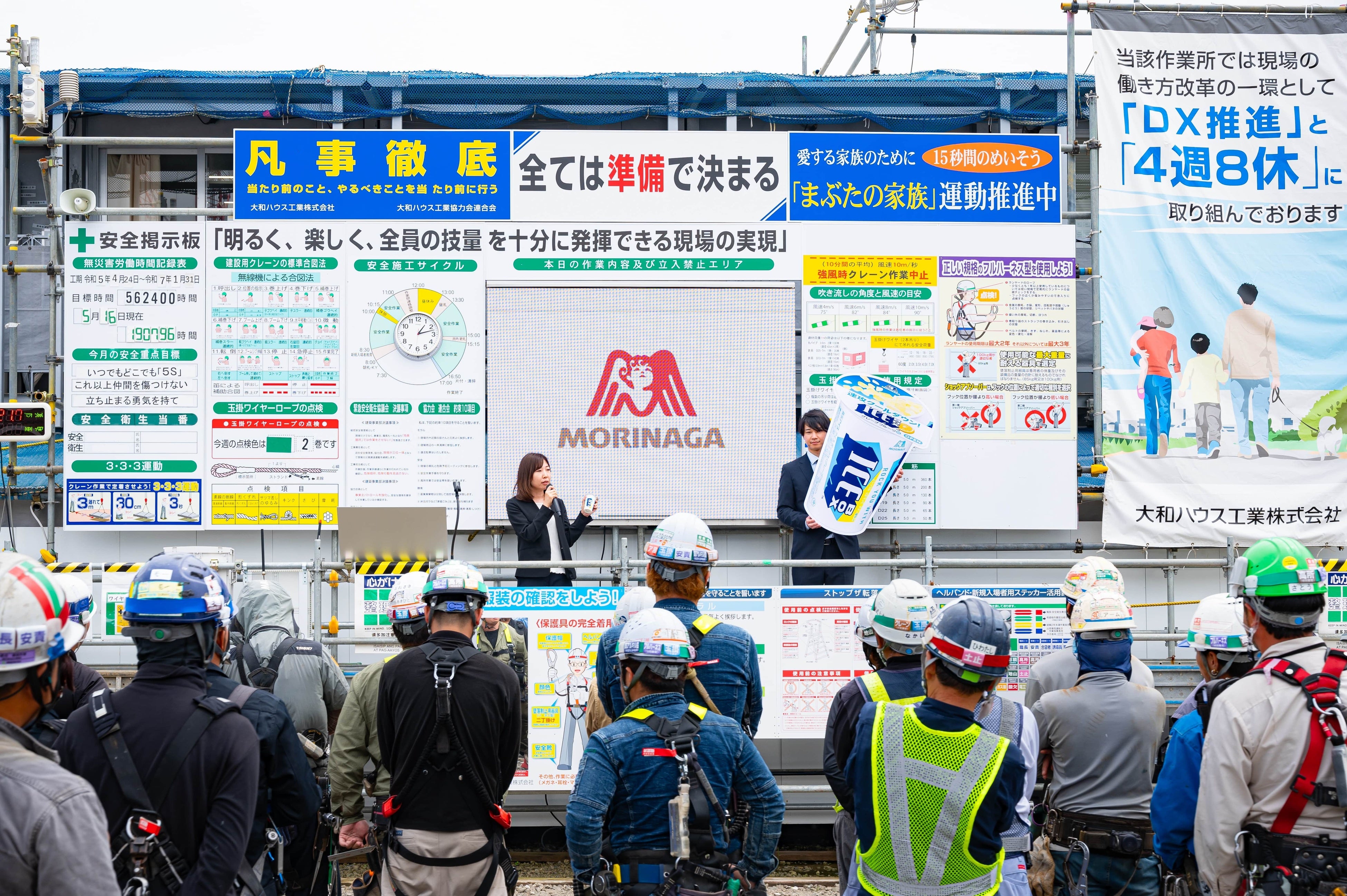 また、大和ハウス工業株式会社の建設現場にアイスボックスを100個贈呈し、外気温が高い中で作業を行う機会が多い作業員の方々にアイスボックスを喫食していただきました。当社は、気温上昇という社会問題に対して、「アイスボックス」を通じて「クールダウン」の大切さをお伝えすることで、あらゆる世代のウェルネスライフをサポートしてまいります。