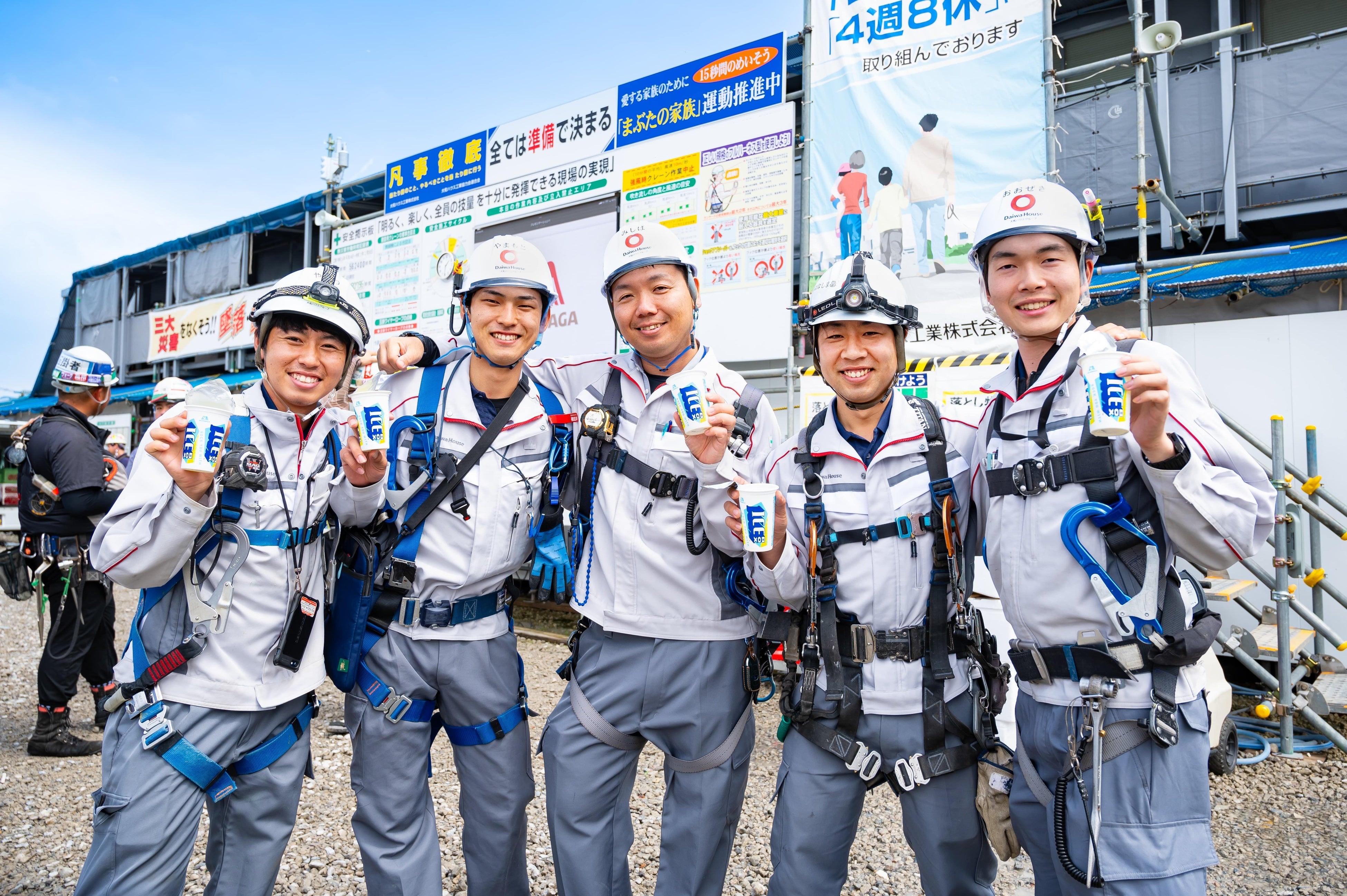 建設現場では長袖、長ズボンが必須であるため、夏場の暑さ対策や体調管理は重点的に行っています。例としては、空調が整っていて水分や塩分を補給できる休憩所を設置することで、現場の作業員が健康に働くことができるように対策を取っています。
