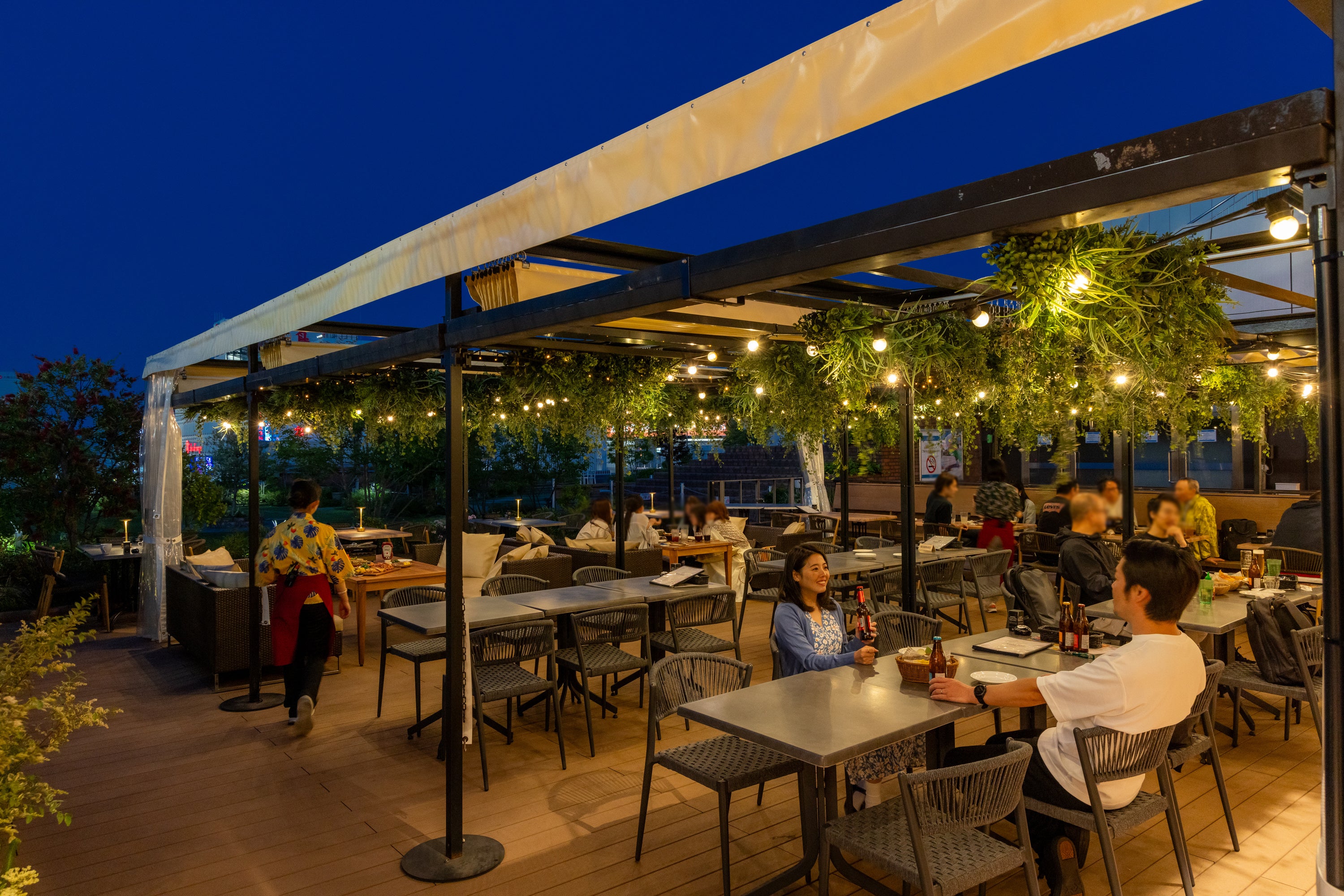 新たにリニューアルされたテラス席では、一部に屋根とカーテンを備えたエリアも設置し、天候に左右されず安心してご利用いただけます。夜には星空を眺めながら、最高のロケーションでお食事をお楽しみいただけます。