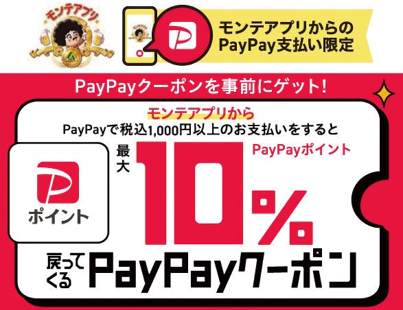 【その②】モンテアプリPayPay決済限定キャンペーン