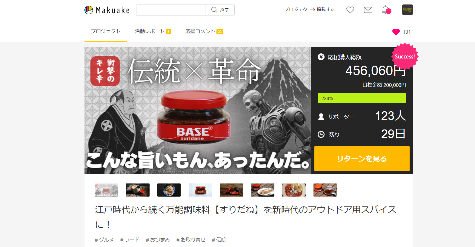 Makuakeプロジェクト公開9日目で目標金額の200%、サポーター100名を達成することができました。