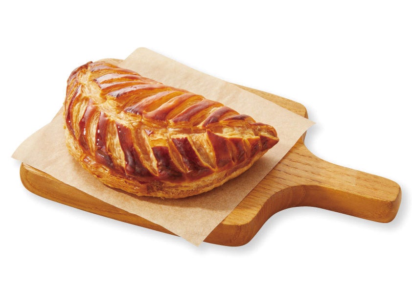 フランス産小麦を使用し、逆折(ぎゃくおり)製法のパイ生地に、ジューシーな国産りんご「ふじ」とカスタードクリームを包み、卵黄を二度塗りし店内で焼き上げました。