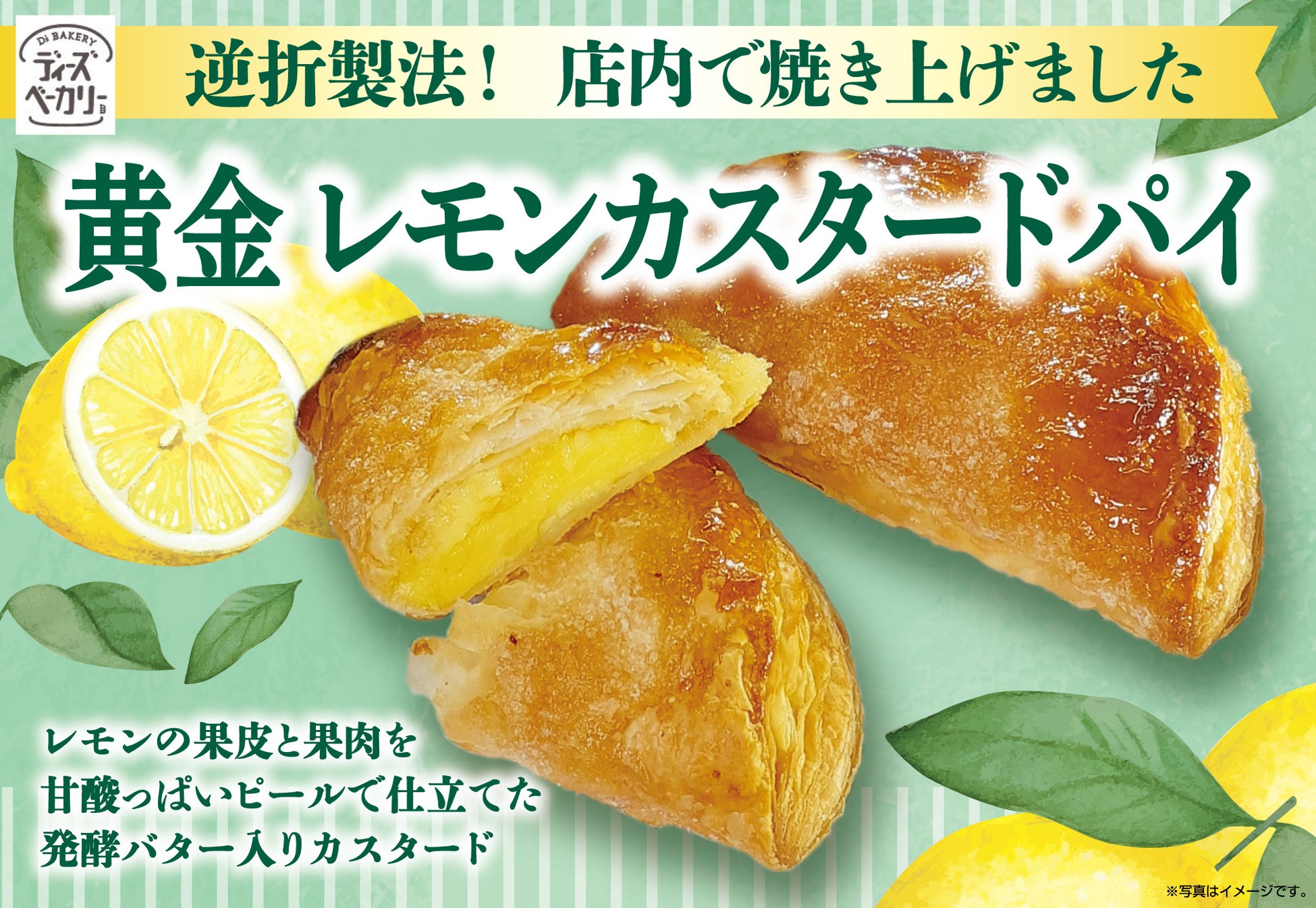 人気の黄金パイシリーズに新商品が登場。レモンの果皮と果肉をたっぷり配合した甘酸っぱいジュレと発酵バター入りのまろやかなカスタードとあわせ、これからのシーズンにピッタリのパイに仕上げました。