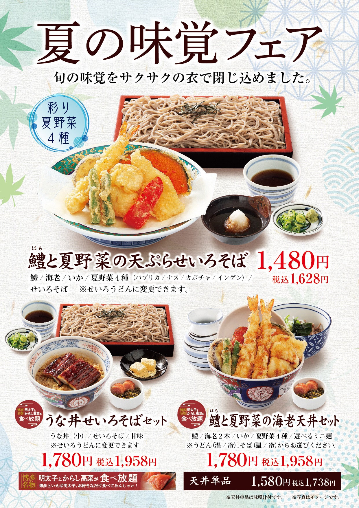◆うな丼せいろそばセット、鱧と夏野菜の海老天丼セット