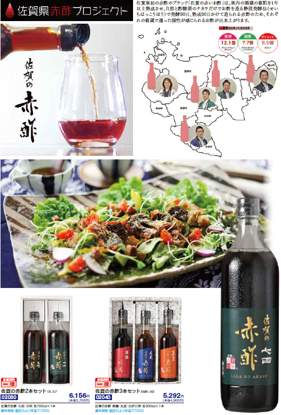 佐賀県内の酒蔵の酒粕を使用して作られる【赤酢】は一般的なお酢に比べ「酸味が低く旨みが多い」点が特徴です。