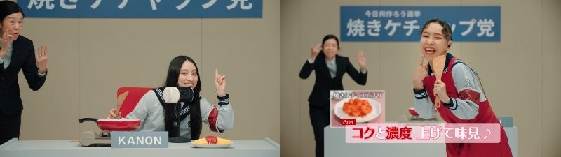 KANONさんは焼きケチャップのおいしさを伝えるため、“焼きケチャ町中華オムライス”を主張、KANONさんが耳元にいるようなささやきボイスは必聴です。一方、RINさんは“焼きケチャエビチリ丼”を主張、RINさんのリズムにのったチャーミングな演説は必見です。それぞれの個性があふれる熱い演説に目が離せません!