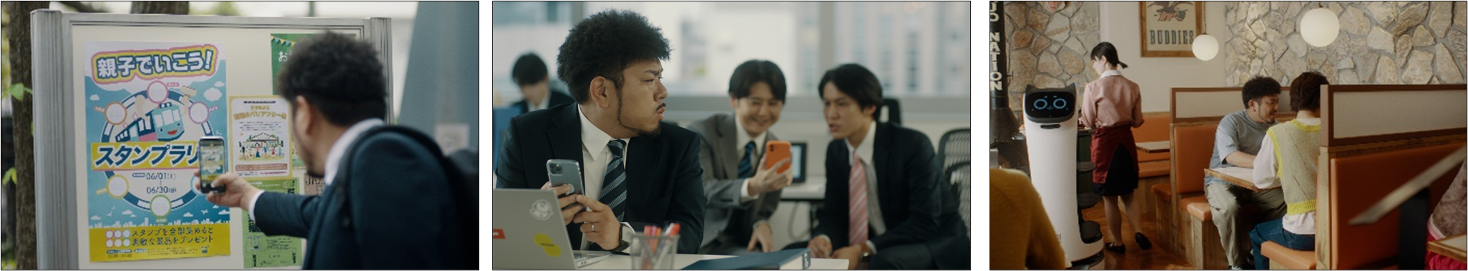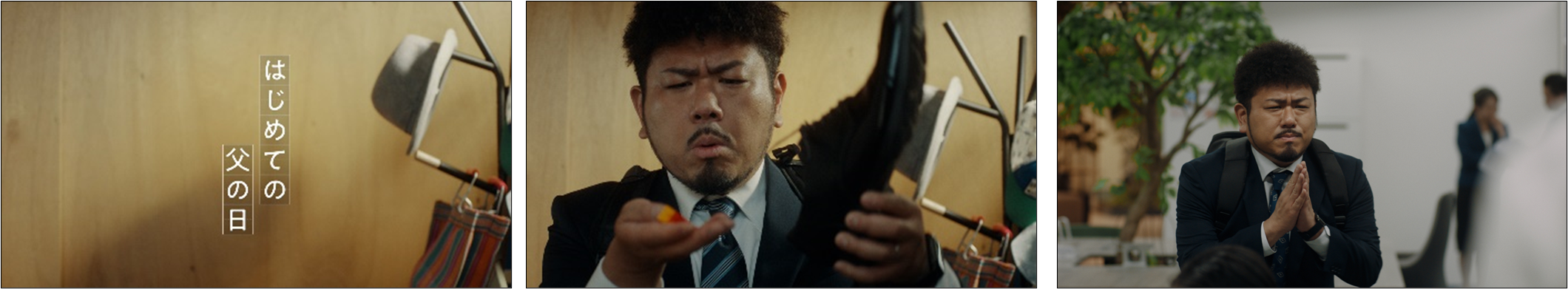 父親役には、子煩悩パパとしても有名な「金ちゃん」を起用し、強面に見えて実は優しい通行人役に相方の坂井さんが出演。さらに、子どもの写真を見せたがる会社の先輩役として父親歴2年目の声優・梶裕貴さんを起用しました。リアルな父親たちの演技にぜひご注目ください。