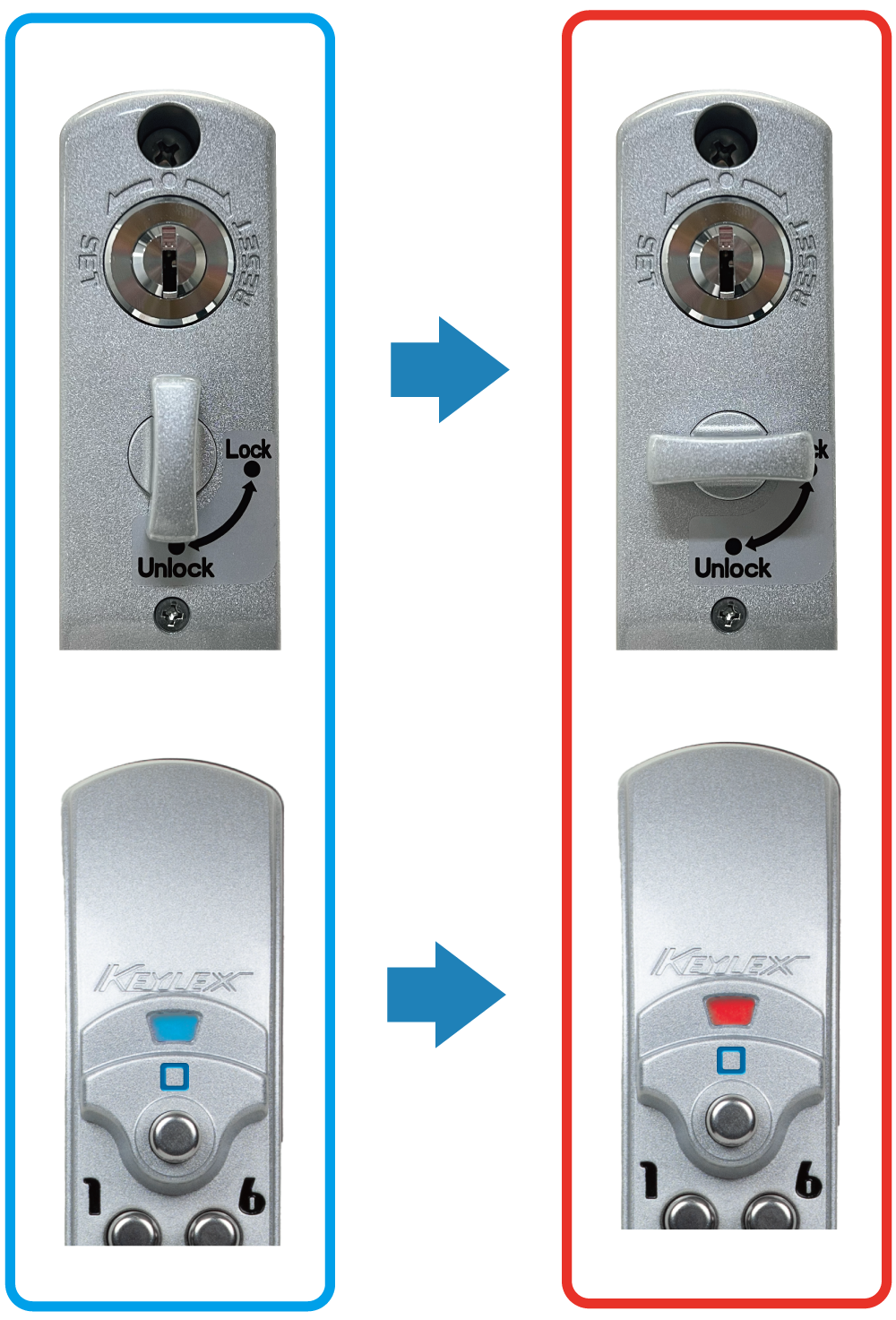 その問題を回避するべく、キーレックスとは別に外に使用中を知らせる表示の付いた鍵を取り付ける対応が行われております。