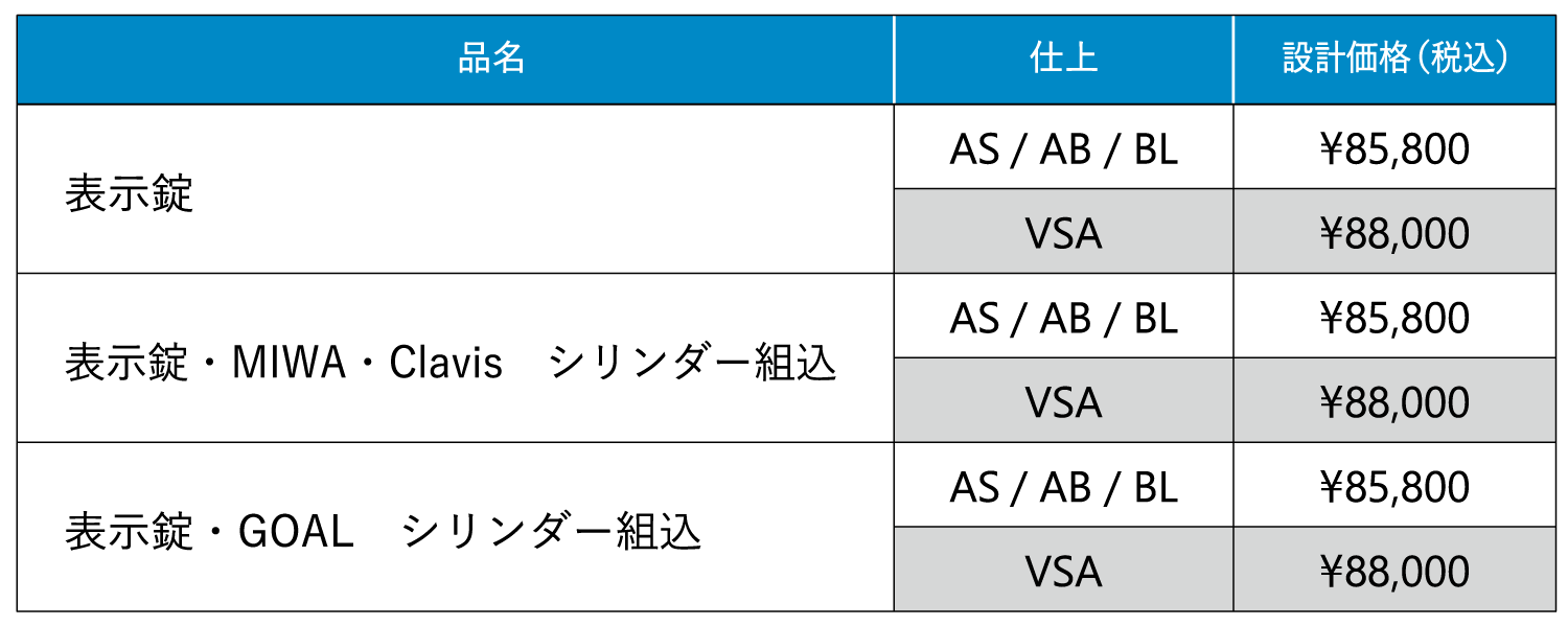 MIWA / Clavis / GOALシリンダーを組み込むことができます。あらかじめご用意いただいたシリンダーをお預かりして出荷します。