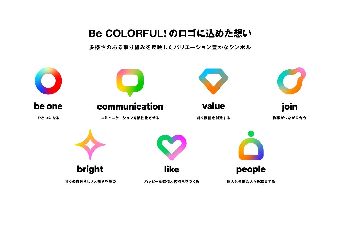 ・「Be COLORFUL!」の「O」は7種類のシンボルに変化し、それぞれに込められたメッセージを発信