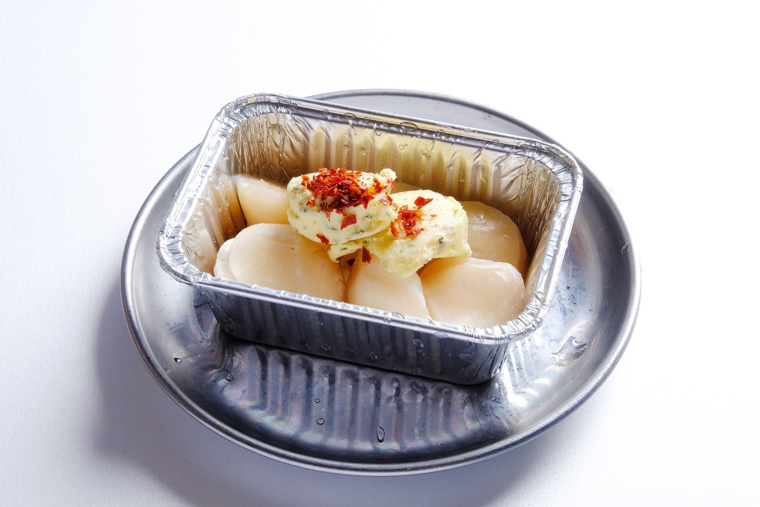 北海道産ホタテを使用。プリプリのホタテとガーリックバターのまろやかな味が相性抜群!!