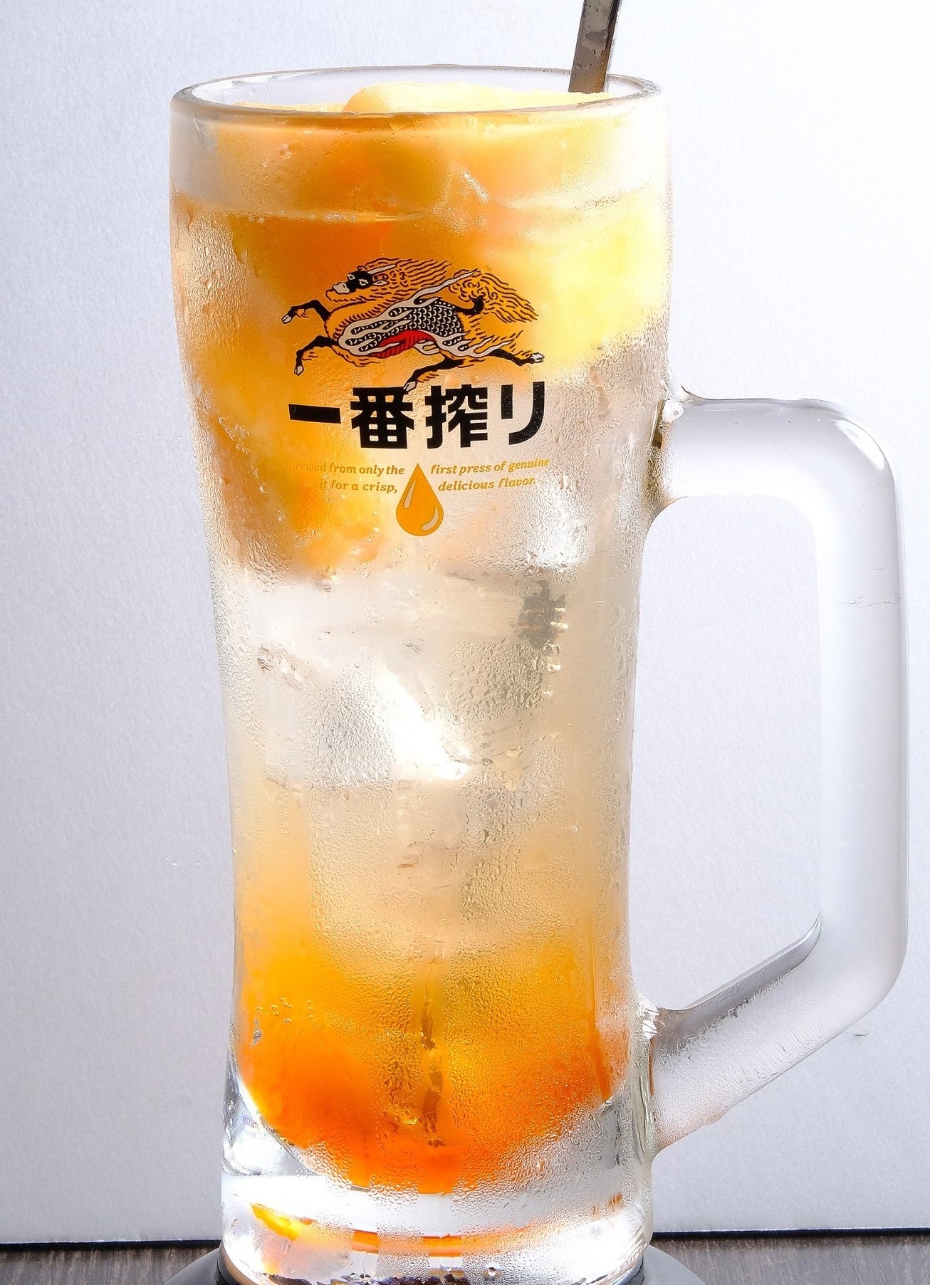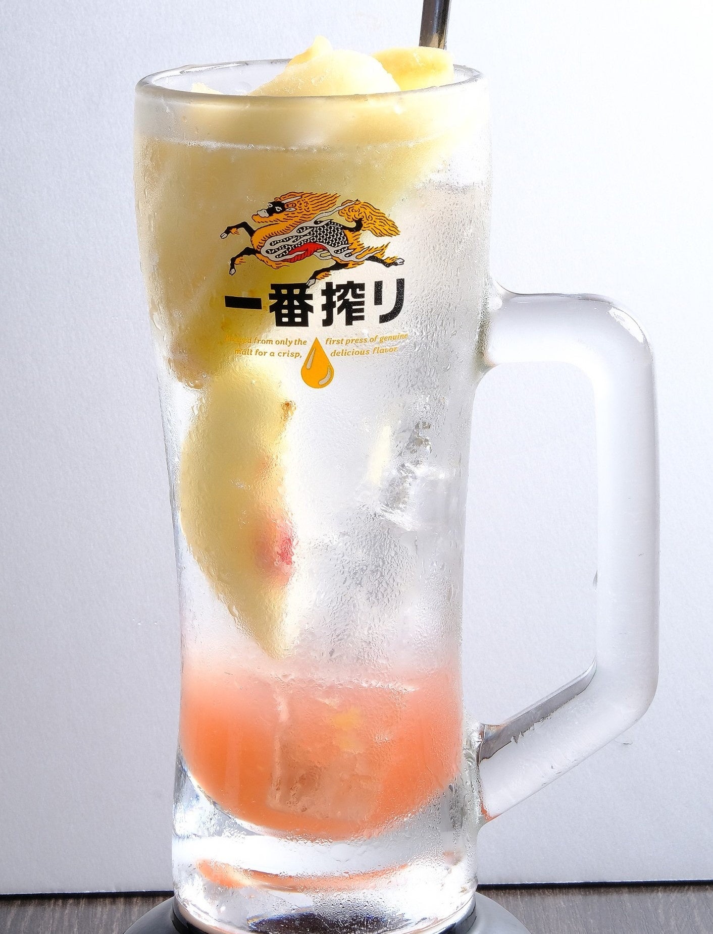 凍結フルーツを氷変わりに投入!!新感覚のサワー。