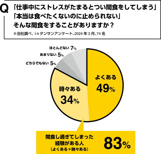 「本当は止めたいのにストレスでついつい食べ過ぎてしまう」、「空腹感が気になって仕事に集中できない」こんなときは、ありませんか?森永製菓が2024年3月に実施した調査(n=74)によると、約8割の人が望まない間食をしていることが分かりました。